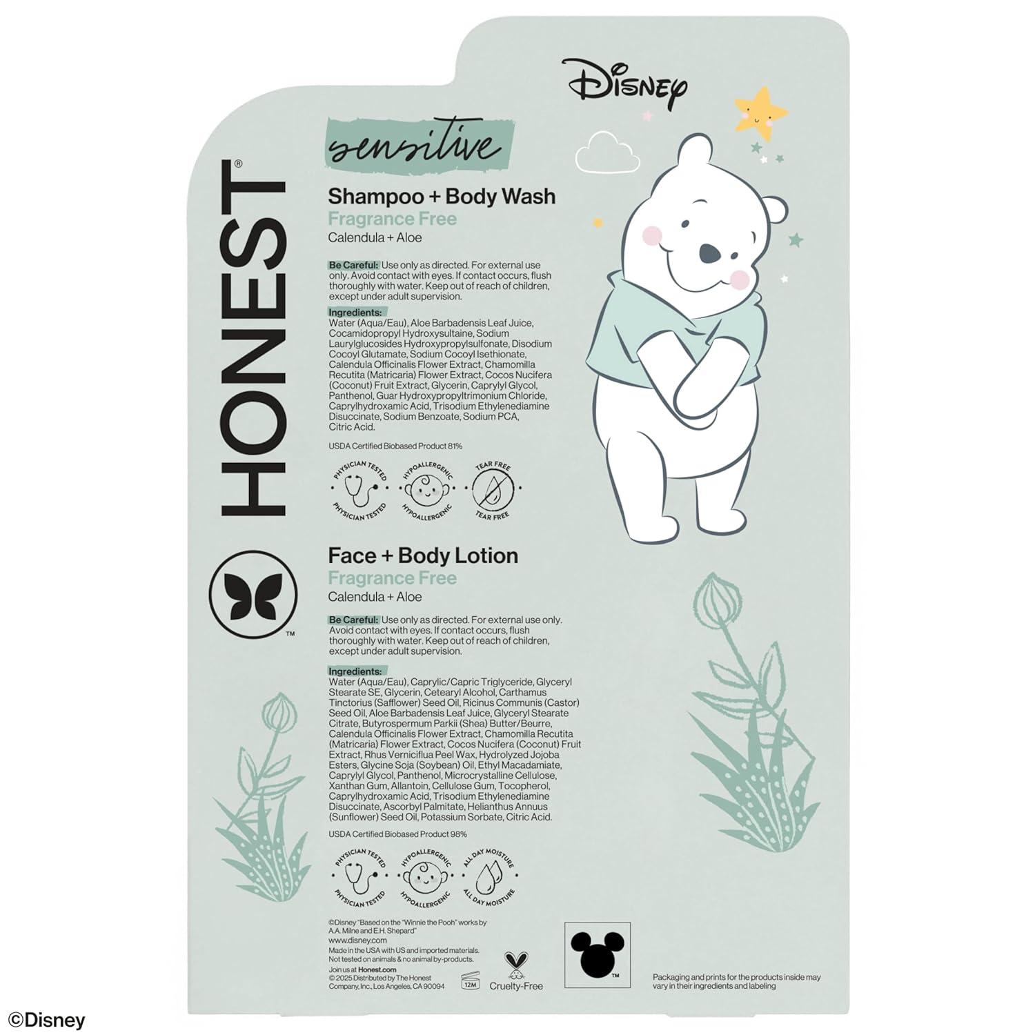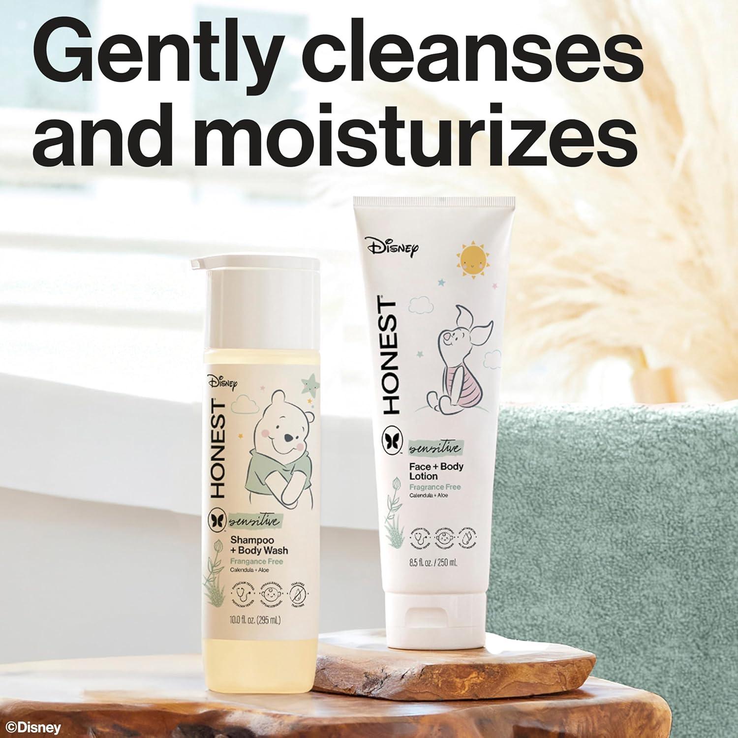 The Honest Company 2-in-1 Cleansing Shampoo + Body Wash and Face + Body Lotion Bundle + Disney Design | Gentle for Baby | Dermatologist Tested | Sensitive Fragrance Free, 18.5 fl oz