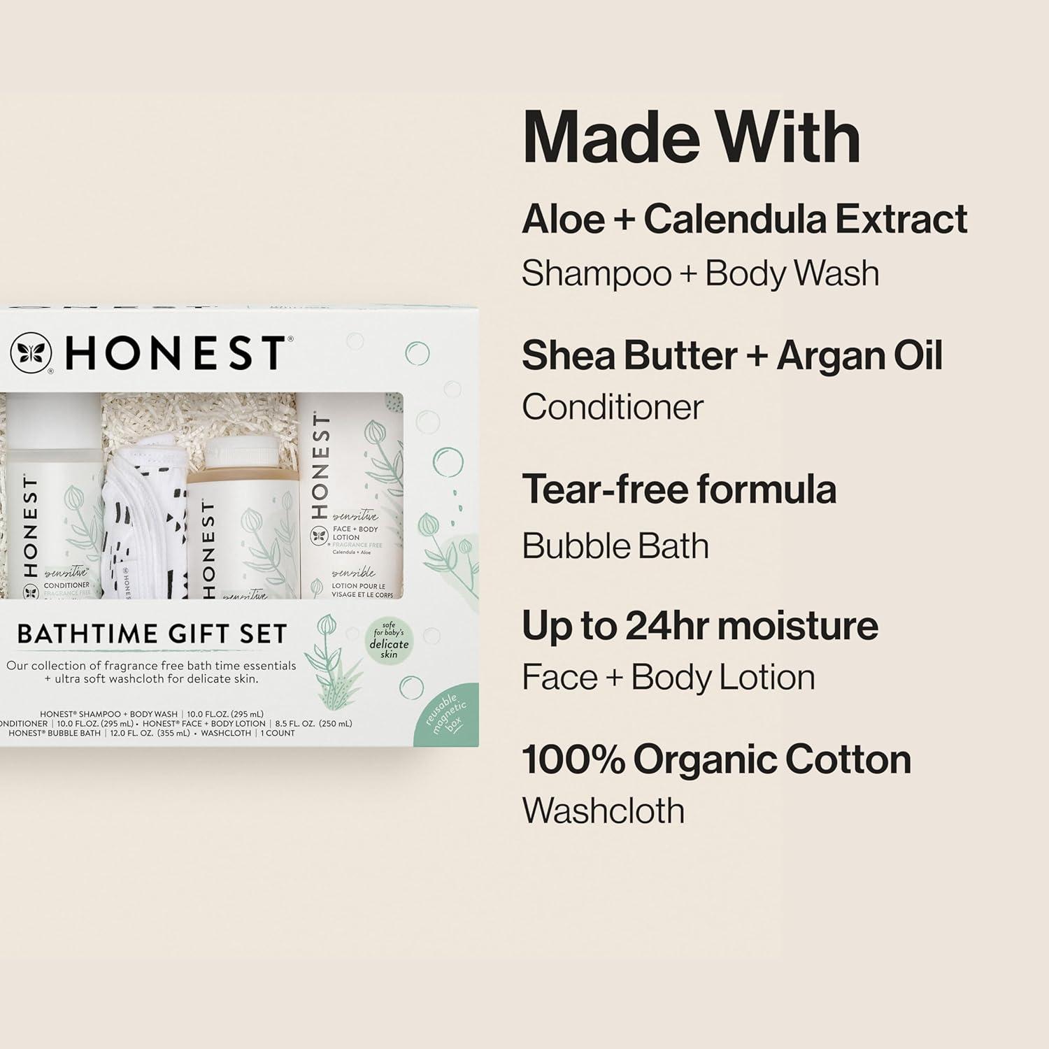 GIFT OF CLEAN: Our Honest Bathtime Gift Set includes bestselling, hypoallergenic personal care essentials for a calm and bubbly bathtime. Naturally derived and made for sensitive skin to keep the whole family, including baby, moisturized and clean