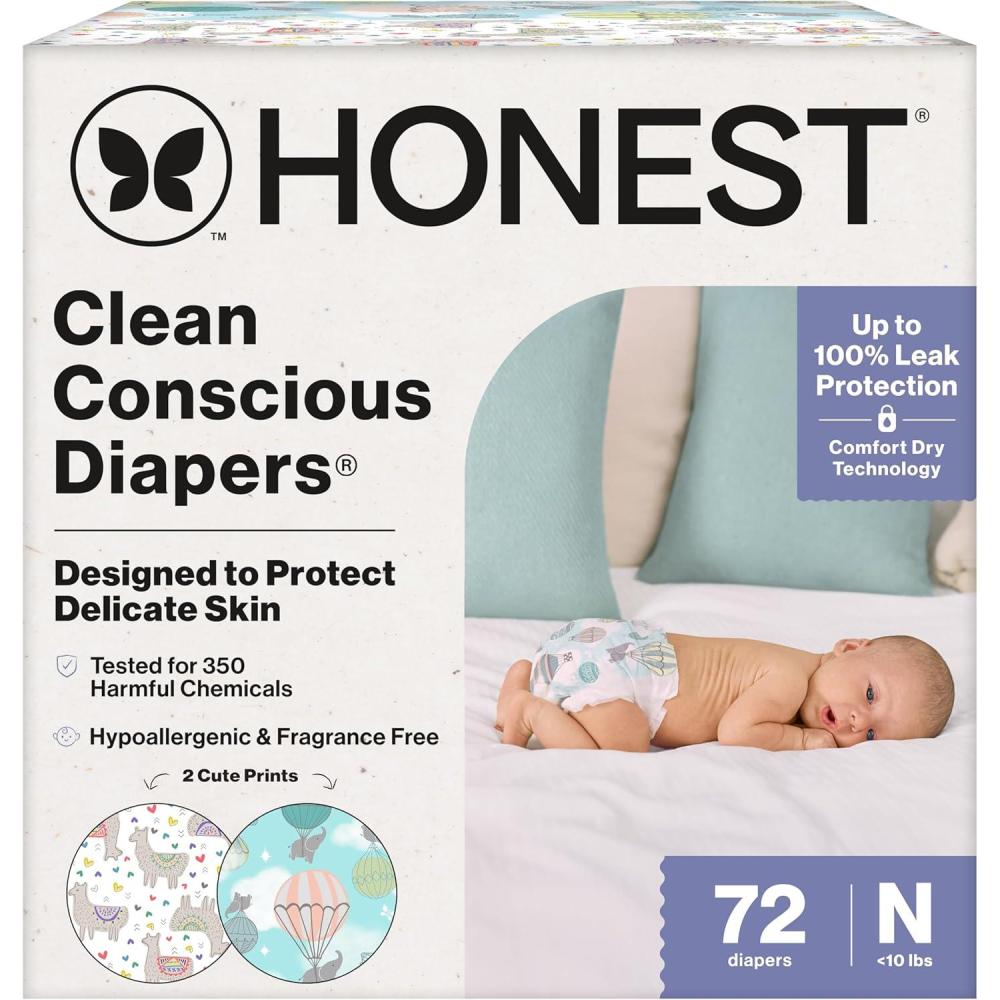 imageThe Honest Company Clean Conscious Diapers for Delicate Skin  Up to 100 Leakproof  Hypoallergenic Fragrance Free  Gender Neutral  Super Club Box Size 1 814 lbs 136 Count Prints May VaryAbove It All  All the Alpacas