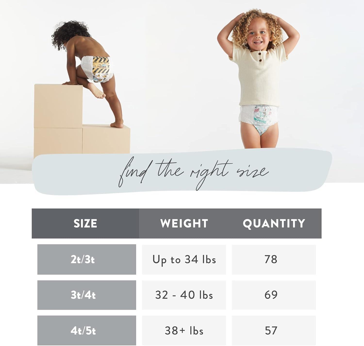 Super Absorbent Protection: Liquid-locking core and secure-fitting moisture-barrier dual layer cuffs help prevent leaks to keep your toddler dry – providing day or night comfort and protection
