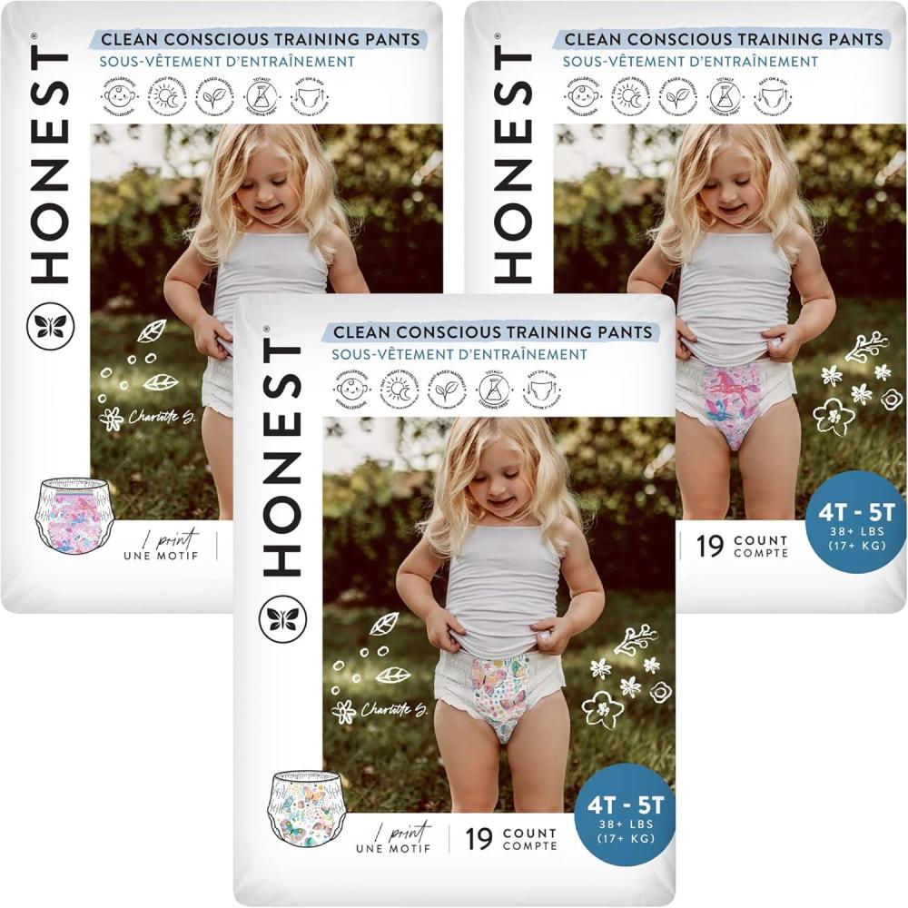 Make the potty-training process a breeze with Honest’s Clean Conscious Training Pants. Featuring a Bio-based core with sustainably harvested fluff pulp, plant-derived materials, and designed to be easy for your toddler to pull on and off – these soft, cozy + super absorbent must-haves make the transition to the toilet as smooth as possible for everyone. With day or night protection built in and so many adorable prints and styles to choose from, your lil’ one will feel cute, confident + ready to potty ‘round the clock.