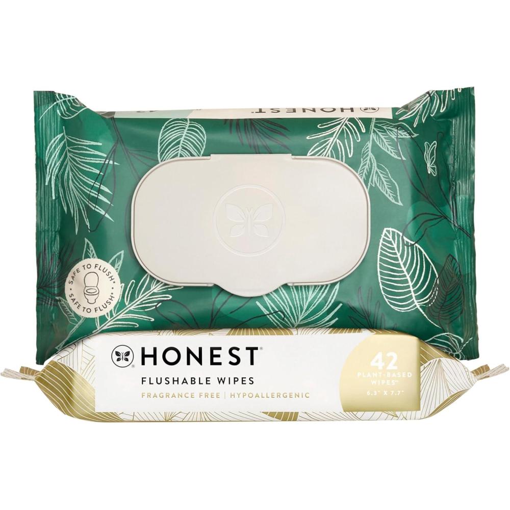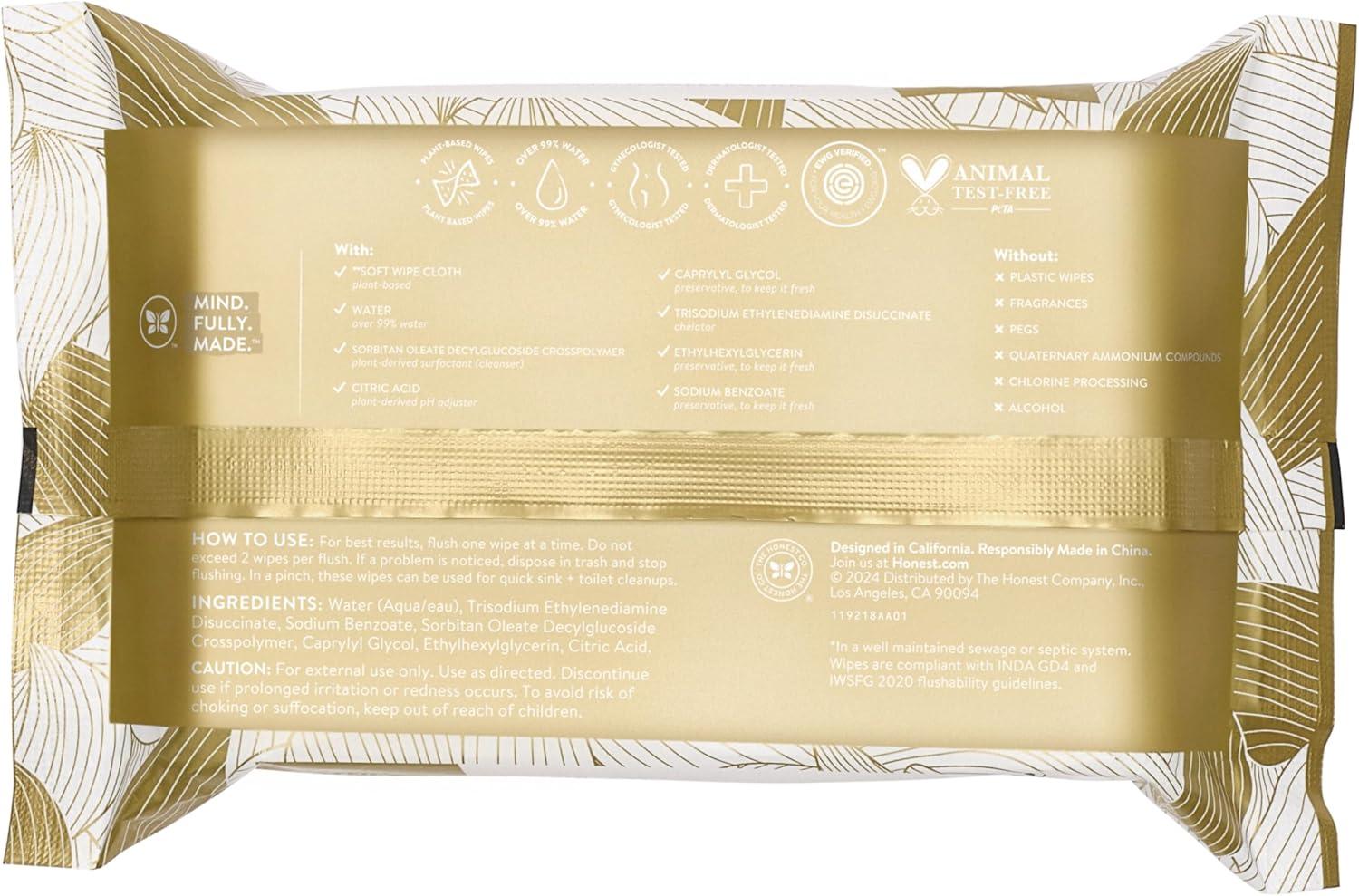 imageThe Honest Company Flushable Wipes for Sensitive Skin  Fragrance Free Hypoallergenic 99 Water Safe to Flush  pH Balanced Feminine Wipes  Tropical Leaves  Gilded Wings 84 Count 2 Packs of 42